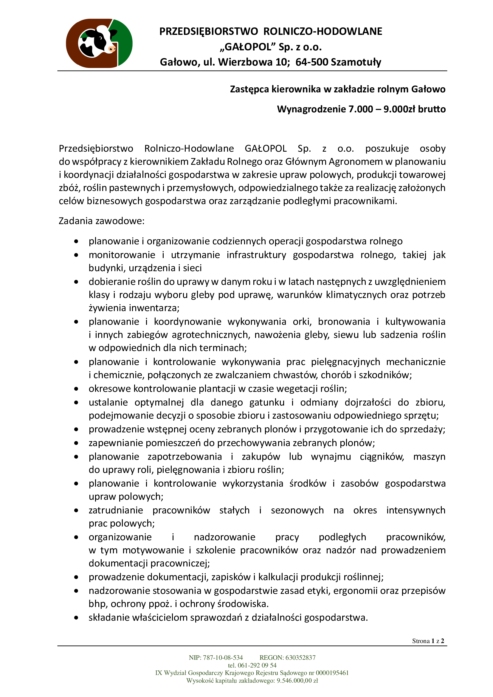 Ogłoszenie o naborze zastępca kierownika ZR Gałowo_1